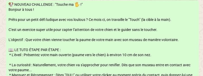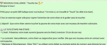 Partage & Entraide : Pose tes questions, partage tes progrès et discute avec d'autres "parents" de chiens qui vivent les mêmes défis que toi.
